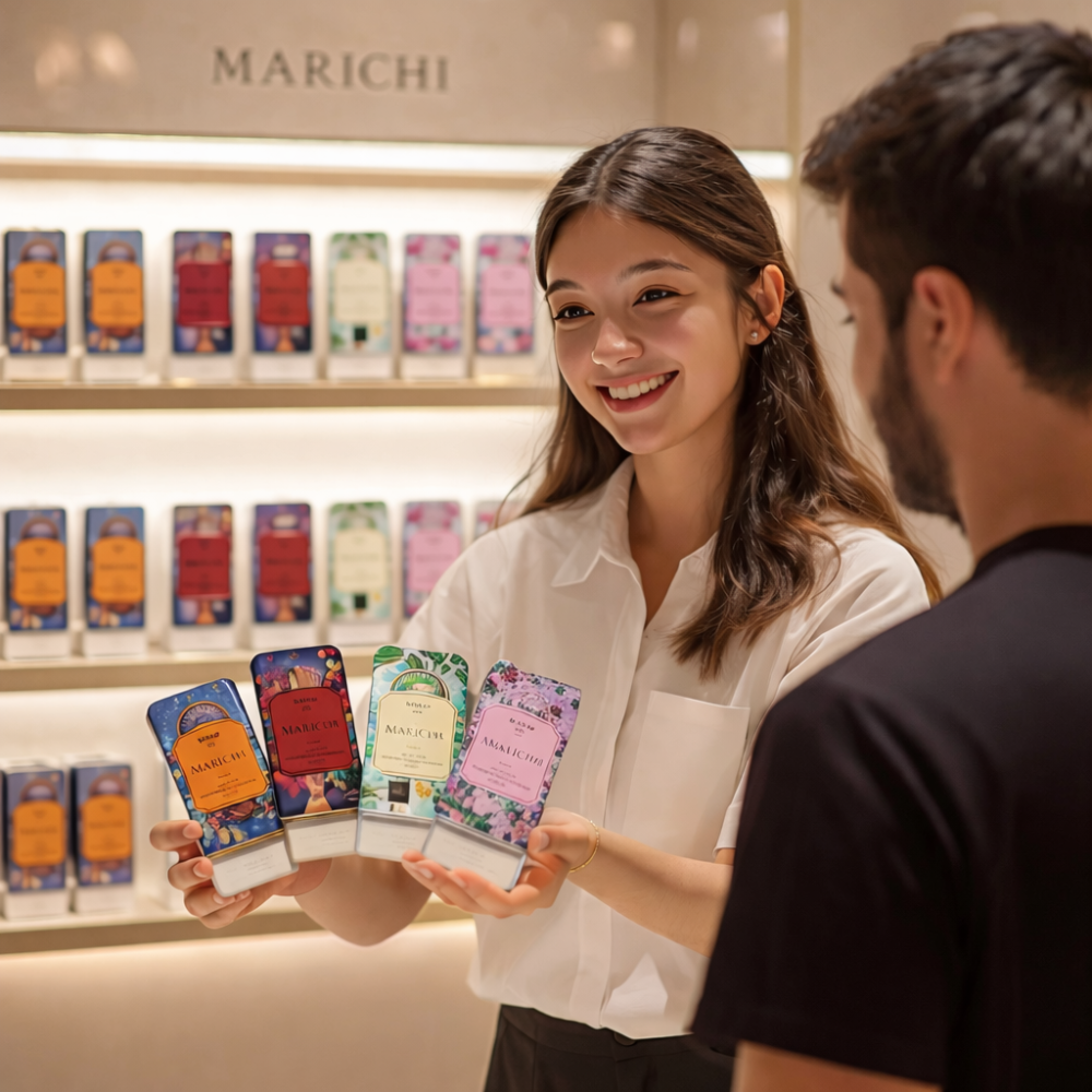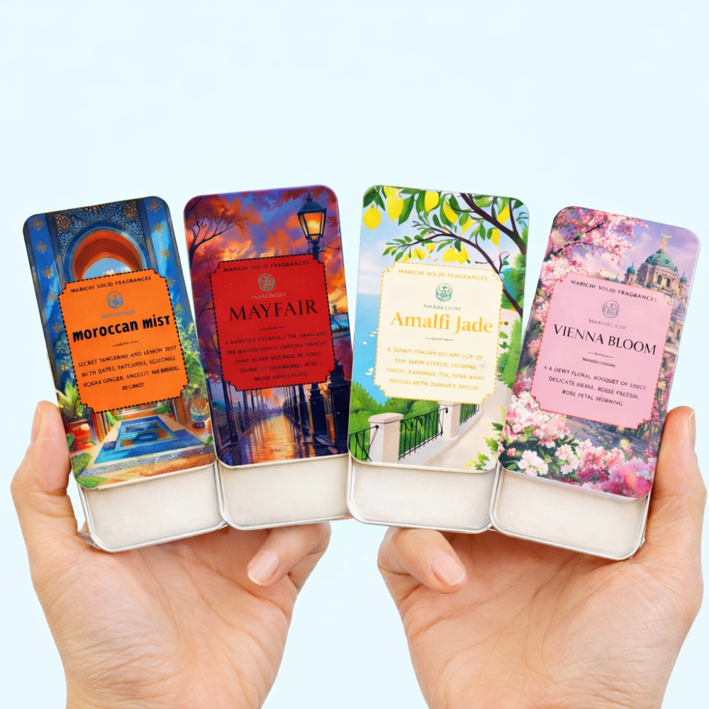 Marichi offers alcohol-free, skin-friendly solid perfumes with coastal-inspired scents, travel-friendly luxury, and personal fragrance rituals for everyday indulgence.